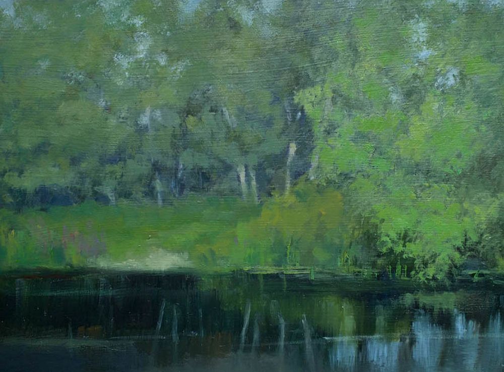 A small plein air painting painted in evening light
